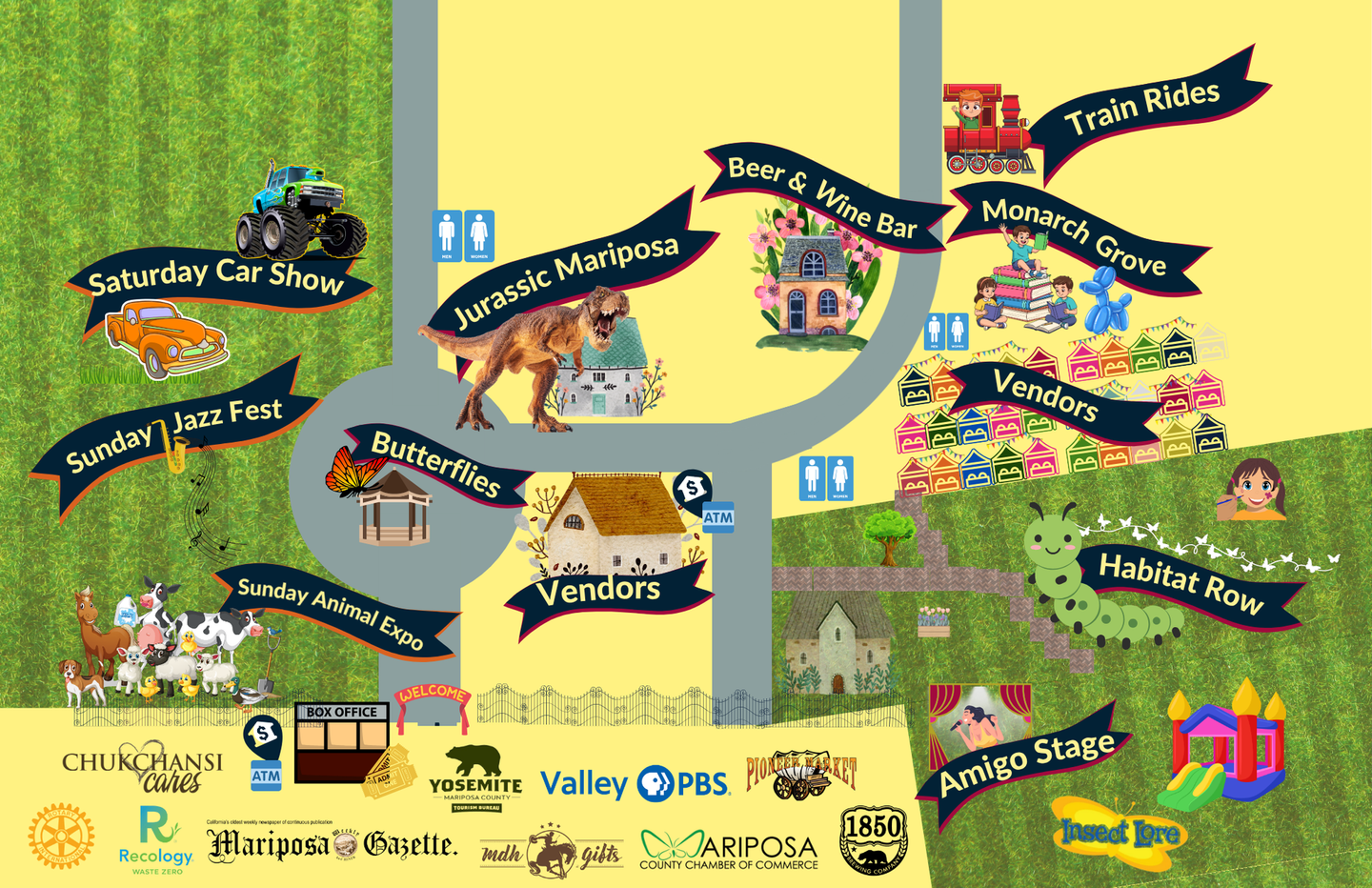 Saturday at 10:00 A.M. join us for the festival at Mariposa County Fairgrounds for food, music, vendors, car show, butterfly releases, rides, the tech center, habitat row and more!