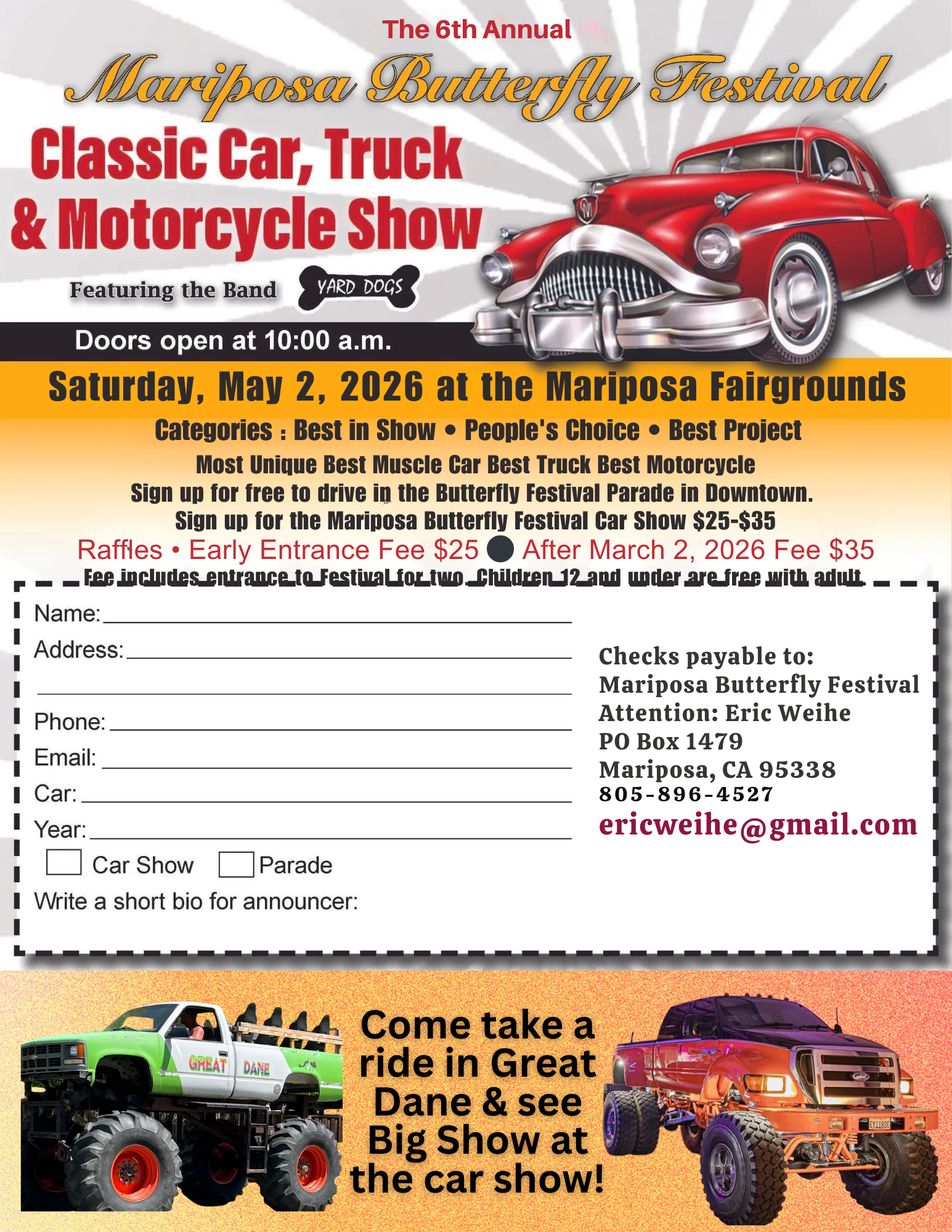 The festival celebrates the Spanish name of our historic Gold Rush town, "Mariposa," meaning "butterfly."